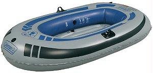 370 lbs. 2-person capacity Coleman exclusive Double Lock Valve technology 15 gauge PVC with Coleman Airtight System 2 oar locks plus grabline NMMA certified Inflated size: 74 x 40 outside/ 43 x 16 inside Weight: 7 lbs.